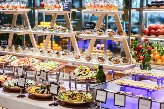 ويضم بوفيه الإفطار الفاخر مجموعة غنية من المقبلات الباردة والساخنة والشوربة والسلطات، جنباً إلى جنب مع الأطباق الرئيسية التي تتضمن مختلف أنواع اللحوم المشوية المحضرة على الطريقة التركية، كما يضمّ البوفيه أيضاً مجموعة واسعة ومتنوّعة من الحلويات والفواكه الطازجة المقدمة مع العصائر الرمضانية والمشروبات الغازية والقهوة العربية. تبدأ أسعار بوفيه الإفطار بـ 199 درهم للشخص الواحد،