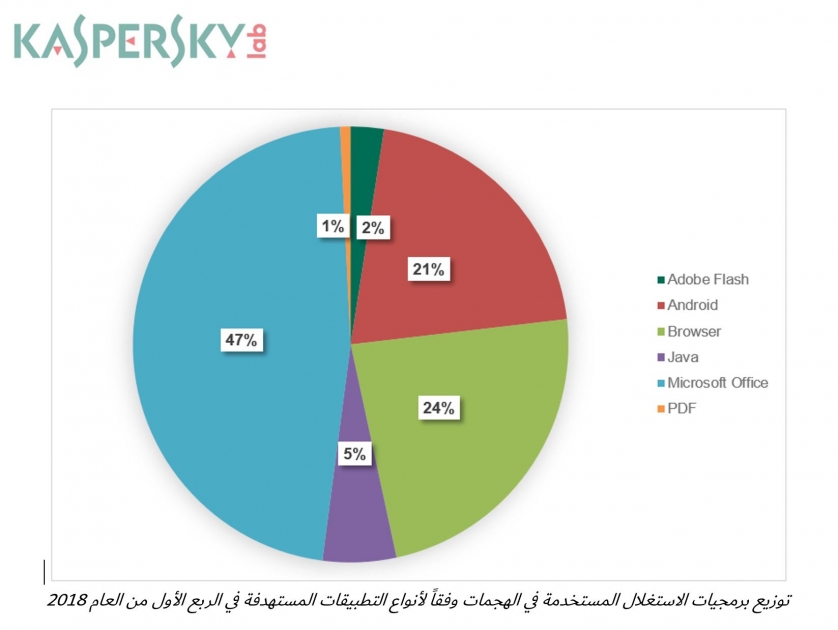 وفي غضون ثلاثة أشهر فقط، نمتْ حصّة هذه الملفات من برمجيات الاستغلال المستخدمة في الهجمات إلى ما يقرب من 50%، ما يمثل ضِعف متوسط عدد عمليات الاستغلال التي استهدفت في 2017 النظام المكتبي الشهير الذي تنتجه مايكروسوفت، وفق نتائج ضمّها تقرير أعدته شركة كاسبرسكي لاب حول تطوّر التهديدات المحدقة بتقنية المعلومات في الربع الأول من العام الجاري.