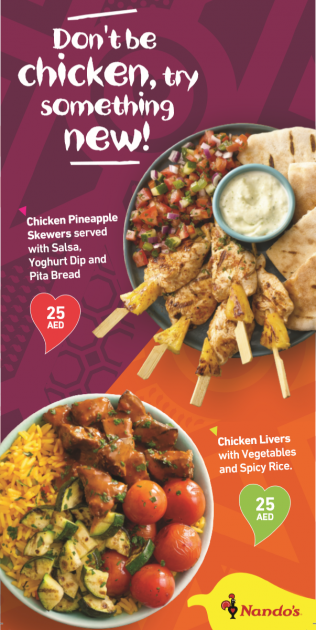 تشمل الإضافة الجديدة إلى قائمة الطعام، وجبة شهية مقابل 25 درهم فقط. ويمكن للعملاء الاختيار ما بين قطعتين من أسياخ الدجاج والأناناس والتي تقدم مع صلصة الزبادي وخبز البيتا. أو اختيار طبق كبد الدجاج مع الخضروات والأرز الحار.