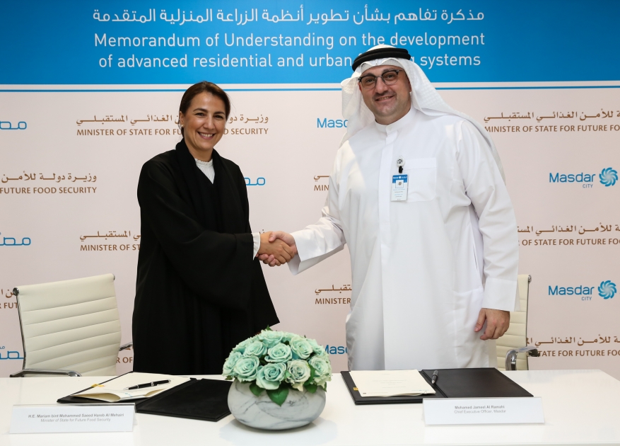 وقام بتوقيع الاتفاقية في مقر شركة "مصدر" في أبوظبي كل من معالي مريم بنت محمد المهيري، وزيرة دولة مسؤولة عن ملف الأمن الغذائي المستقبلي، ومحمد جميل الرمحي الرئيس التنفيذي لشركة "مصدر"، وذلك بحضور مسؤولين من الطرفين.