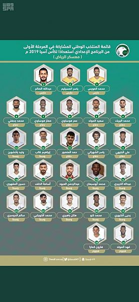 أعلنت إدارة المنتخب السعودي الأول لكرة القدم عن القائمة المختارة من المدير الفني "الأرجنتيني "خوان بيتزي والمكونة من 25 لاعباً للمشاركة في معسكر الرياض الذي يمثل المرحلة الأولى من استعداداته للمشاركة في كأس أمم آسيا 2019 .