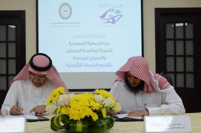 وقعت الجمعية السعودية الخيرية لمكافحة السرطان؛ اتفاقية تعاون مع مجموعة الحميزي للمحاماة والاستشارات، مؤخراً بمقر الجمعية في الرياض، حيث مثل الجانبين في التوقيع رئيس مجلس إدارة الجمعية السعودية الخيرية لمكافحة السرطان معالي الدكتور محمد بن أحمد الكنهل، ومدير مجموعة الحميزي للمحاماة والاستشارات سعادة الدكتور خالد بن محمد الحميزي، وبحضور أعضاء مجلس إدارة الجمعية.