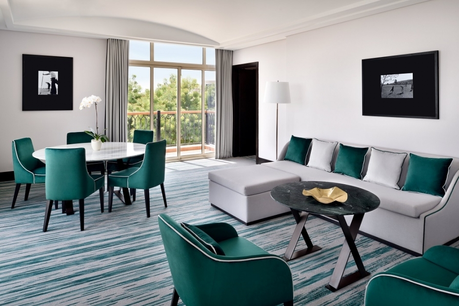 وتتناغم في ديكورات الغرف الجديدة التصاميم الأنيقة والبسيطة وتتجلى فيها إبداعات الاستخدام الفني لتشطبيات النحاس لتتوازن مع التدرجات الغامرة للون الأخضر، في حين تضفي التفاصيل المخملية لمسة من النعومة على الأثاث. وتتماهى الحلة الجديدة للغرف في "العنوان مونتجمري" مع أجواء المنتجع والمناظر الطبيعية الساحرة التي تحيط به إضافة إلى ملعب بطولات الجولف ومبنى أكاديمية "تروون جولف".