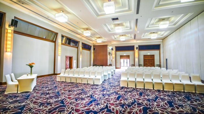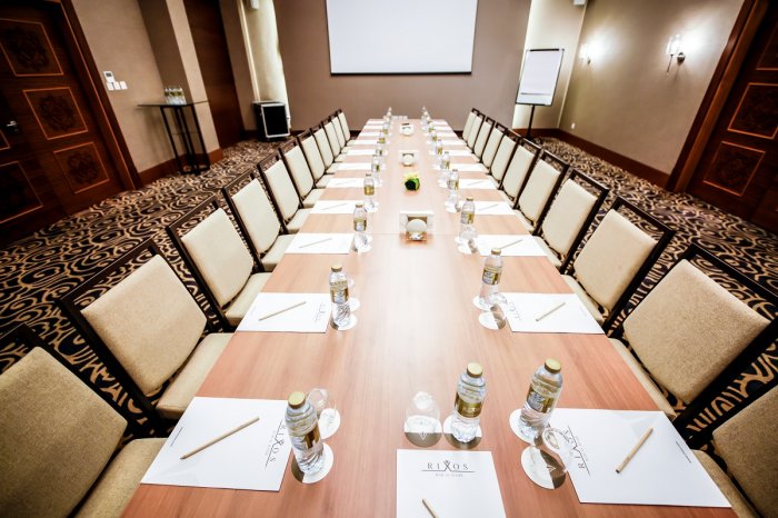 وأضافت، تبلغ مساحة قاعة أنقرة، التي تعد القاعة الرئيسية في المنتجع 840 مترًا مربعًا، وتتسع لما يفوق الـ 880 ضيف. ويمكن تحويلها بسهولة إلى قاعتين منفصلتين للفعاليات الأقل حجمًا. كما تتراوح مساحة غرف الاجتماع الثلاثة الموجودة فيها، إسطنبول وأنطاليا وبودروم ما بين 67 متر مربع، و 105 متر مربع على التوالي، وهي مثالية للاجتماعات الودية، حيث تتسع لما بين 60 و120 ضيف. كما يمكن لمنظمي الفعاليات الإفادة من أنظمة الصوتيات والمرئيات الحديثة، التي زودت بها كافة الغرف بطريقة تتماهى مع تصاميمها الراقية.