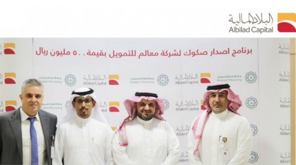 أعلنت البلاد المالية، عن نجاح اول إصدار صكوك لشركة معالم للتمويل بقيمة 100,000,000 ريال سعودي مدتها 3 سنوات وذلك من خلال طرح خاص.