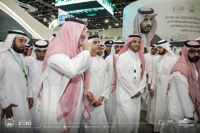 كما شهد الجناح زيارة سمو الأمير الدكتور بندر بن عبدالله المشاري آل سعود مساعد وزير الداخلية لشؤون التقنية، جناح وزارة الداخلية السعودية المشارك في أسبوع جيتكس للتقنية 2018 في دبي. تجول سمو الأمير في أرجاء الجناح واطلع على الخدمات الالكترونية والتطبيقات الذكية التي تقدمها العديد من الجهات والقطاعات ضمن جناح وزارة الداخلية السعودية الداعمة للتحول الرقمي ورؤية المملكة العربية السعودية 2030م، وأعرب سموه في ختام الجولة عن فخره بالنجاحات المتتالية التي تحققها وزارة الداخلية من خلال تواجدها المستمر في معرض أسبوع جيتكس للتقنية 2018 للعام الرابع على التوالي.