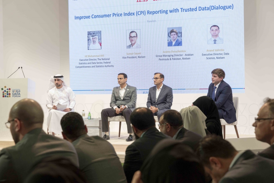 شهد جناح دولة الإمارات في منتدى الأمم المتحدة العالمي للبيانات اليوم جلسة حوارية شارك فيها ممثلون عن الهيئة الاتحادية للتنافسية، وشركة نيلسن الرائدة في مجال الأبحاث التسويقية. تم خلالها تسليط الضوء على مؤشر أسعار المستهلك وتطويره اعتماداً على البيانات الموثوقة.