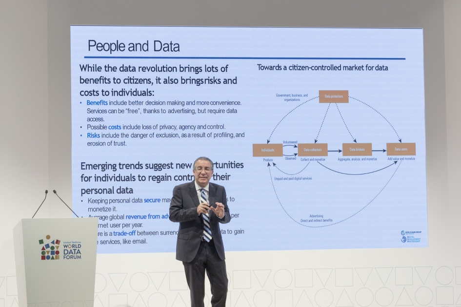 شهد اليوم الثالث من أجندة منتدى الأمم المتحدة العالمي للبيانات في جناح دولة الإمارات جلسة نقاش بعنوان "التنمية القائمة على البيانات" قدمها الدكتور زكي خوري، مستشار التكنولوجيا والاستراتيجية في مجموعة البنك الدولي، ألقى خلالها الضوء على التنمية القائمة على البيانات وآلية استثمار البيانات للحصول على نتائج مستدامة.