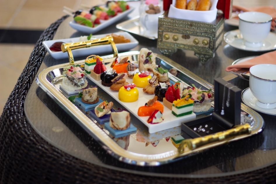 ولا تكتمل أمسية احتساء الشاي دون إضافة مجموعة متنوعة وواسعة من المعجنات والمخبوزات والحلويات اللذيذة، ولذلك سيجد ضيوف الفندق اختيارات متنوعة ليستمتعوا بالاختيار من بينها، وتشمل بودينغ التوت بالزعفران وتشيز كيك البرتقالية وتارت الفراولة وموس جبنة الماسكربوني بالهيل والكريمة المخفوقة وكعكة الشوكولاتة بماء الورد واللوز، وكعكة الفستق بالليمون ومختلف أنواع البقلاوة. وتتوفر أيضاً مجموعة مختارة من مزيج الفواكه الموسمية الطازجة التي تقدم مع زبادي النعناع والكراميل المملح وشوكولاتة الذهب مع المكسرات الذهبية.