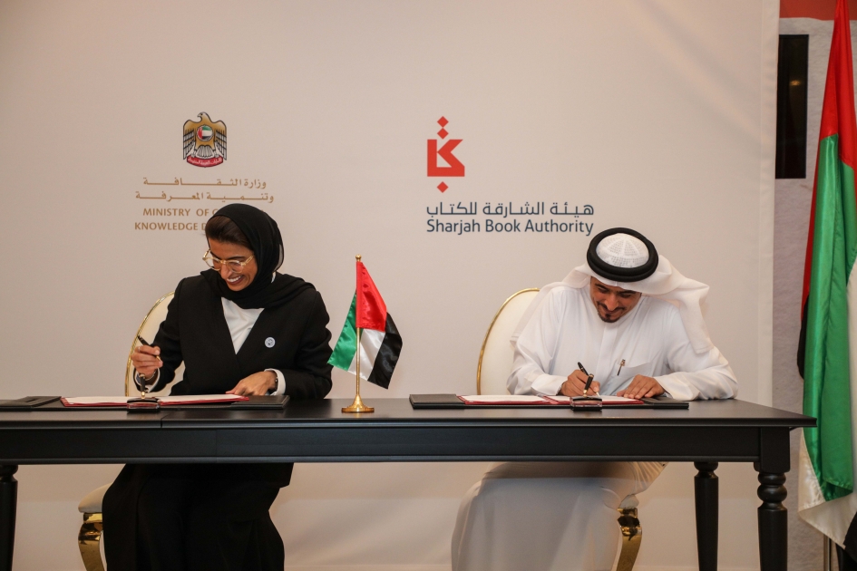 وقّعت وزارة الثقافة وتنمية المعرفة وهيئة الشارقة للكتاب مذكرة تفاهم، بهدف تعزيز سبل التعاون المشترك في مجالات الثقافة المتعددة، والعمل على دعم الكتّاب والأدباء والناشرين والارتقاء بحركة النشر في دولة الإمارات العربية المتحدة والارتقاء بها، وذلك ضمن فعاليات الدورة السابعة والثلاثين من معرض الشارقة الدولي للكتاب، التي تقام خلال الفترة من 31 أكتوبر حتى 10 نوفمبر المقبل في مركز إكسبو الشارقة.