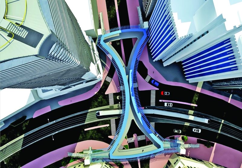 تنفيذاً لتوجيهات صاحب السمو الشيخ محمد بن راشد آل مكتوم نائب رئيس الدولة رئيس مجلس الوزراء حاكم دبي، رعاه الله، برفع مستوى السلامة المرورية وتوفير وسائل انتقال آمنة للمشاة لعبور الطرق، أعلنت هيئة الطرق والمواصلات في دبي أنها ستبدأ في تنفيذ ثلاثة جسور للمشاة في مواقع مختلفة من دبي، بينها جسر للمشاة هو الأول من نوعه على شارع الملك سلمان بن عبد العزيز آل سعود، له أربعة سلالم تربط الجهات الأربع على التقاطع، ويتميز الجسر بتصميمه الفريد الذي استوحي من طبيعة المباني في المنطقة والمواقع الساحلية.