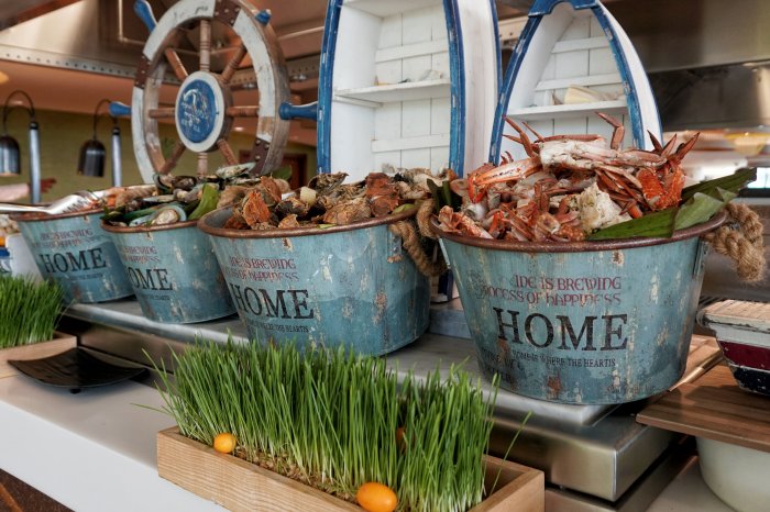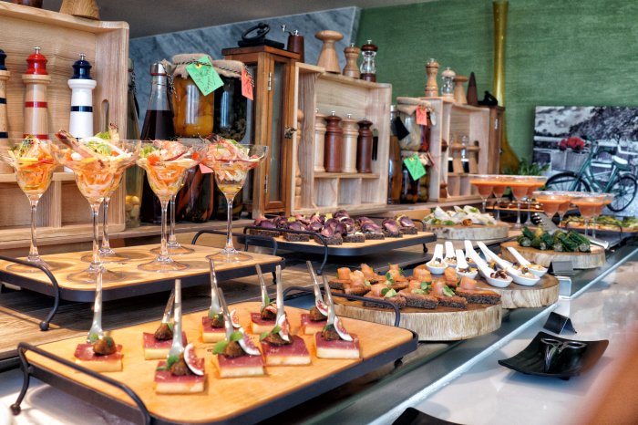 وتقدّم وجبة البرانش هذه تشكيلةً واسعة من السلطات ذات القيمة الغذائية العالية، والمقبلات العربية ووجبات التاباس الصحية. أما محبي الإفطار الصباحي فسوف يغرمون بالزاوية المخصصة للإفطار بينما يستمتع متبعي حمية الباليو بعدة أنواع من اللحوم والأسماك. وخصصت زاوية بحرية لمحبي الأسماك حيث يمكنهم تناول العديد من الأطعمة البحرية مثل سرطان البحر وبلح البحر والمحار ’فين دي كلير‘ بالإضافة إلى تشكيلةٍ واسعة من السوشي.