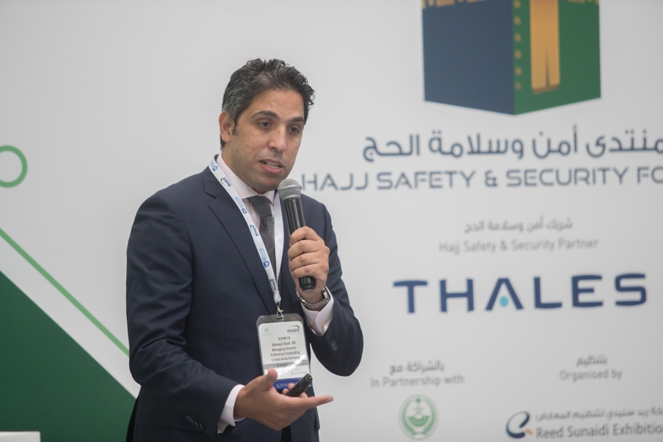 وفي سياق متصل، استعرض إياد إبراهيم مدير المبياعات والتسويق في شركة "ثاليس" الفرنسية، استراتيجية متكاملة لكيفية إدارة الحشود في موسم الحج والعمرة، عبر وضع نظام متكامل مع البيانات التي يتم تحليلها لاتخاذ القرارات الصحيحة في الوقت المناسب.