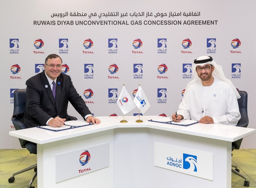 أدنوك توقع اتفاقية امتياز حقل غاز غير تقليدي مع "توتال"