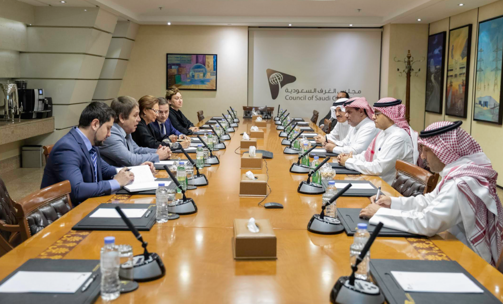جاء ذلك خلال اللقاء الذي عقده رئيس مجلس الغرف السعودية الدكتور سامي العبيدي والأمين العام للمجلس الدكتور سعود المشاري (الثلاثاء) مع مديرة مجلس الأعمال الروسي العربي السيدة تاتيانا غفيلافا بحضور سفير جمهورية روسيا الاتحادية لدى المملكة سيرجي كوزلوف، لمناقشة أوجه تعزيز العلاقات التجارية بين البلدين وبحث مشاركة قطاع الأعمال السعودي في معرض (ارابيا اكسبو ) 2019م.