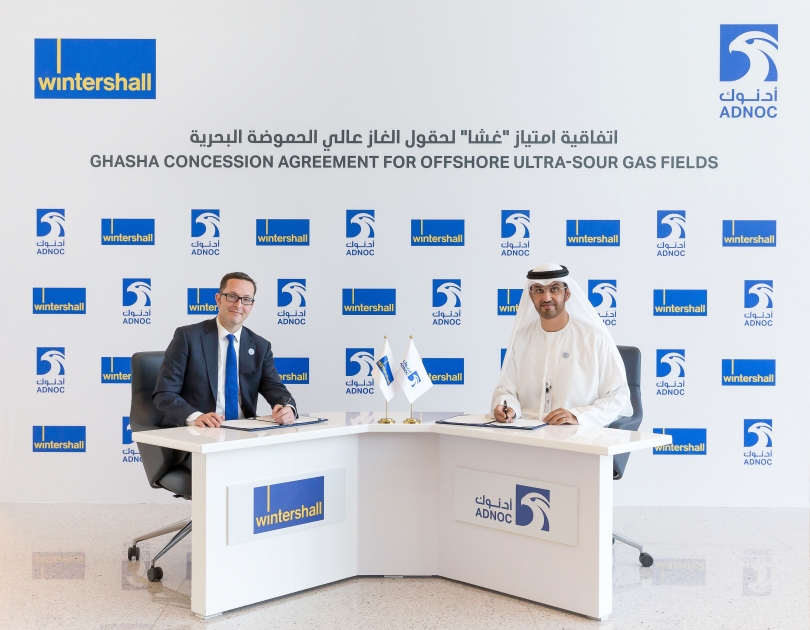 وقعت شركة بترول أبوظبي الوطنية "أدنوك"، نيابة عن حكومة أبوظبي، اتفاقية امتياز مع شركة "وينترشال هولدينغ جي إم بي أتش"، حصلت بموجبها الأخيرة على نسبة 10% في منطقة امتياز "غشا" الذي يعد مشروعاً عملاقاً للغاز عالي الحموضة. وتضم منطقة الامتياز حقول "الحِيل" و"غشا" و"دلما"، إضافة إلى حقول أخرى للغاز الحامض تشمل "نصر" و"صرب" و"مبرز". ووفقاً لبنود الاتفاقية، تتحمل "وينترشال" نسبة 10% من المصاريف الرأسمالية والتشغيلية والتطويرية للمشروع.