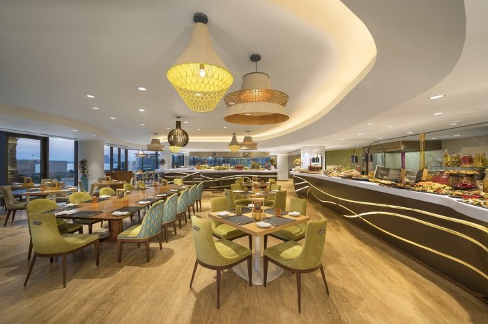 *يمكن لضيوفنا ممن ينشدون تشارك الأطباق الشهية مع العائلة اختيار وجبة من قائمة المأكولات الشرقية المتوافرة في مطعم ’ذا سوشيال كيتشن‘