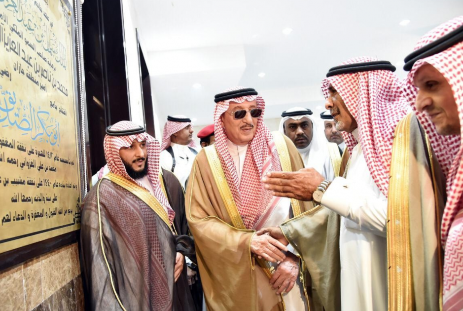 و افتتح سموه جامع أبو بكر الصديق بمحافظة العيدابي وذلك في مستهل الجولة التي يقوم بها سموه للمحافظة ويدشن عددًا من المشروعات التنموية والتطويرية والبلدية والتعليمية والصحية والنقل والمياه بالمحافظة تقدر قيمتها بــــ 500 مليون ريال .