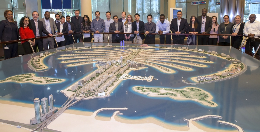 وتم استضافة طلبة ماجستير إدارة الأعمال التنفيذية من قبل فريق عمل إدارة "نخيل للمراسم والوفود" الذي يستضيف نحو 4،000 زائراً كل عام من جميع أنحاء العالم بما في ذلك المسؤولين الحكوميين والمهندسين المعماريين والمشغلين السياحيين والطلاب وذلك لتقديم العروض والجولات التعريفية للمشاريع الرئيسية لشركة "نخيل".