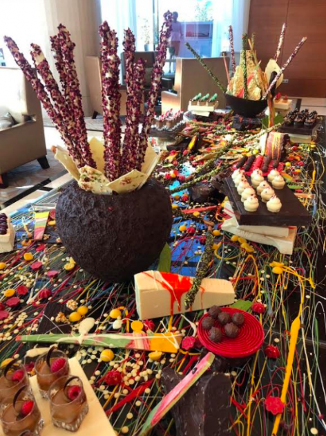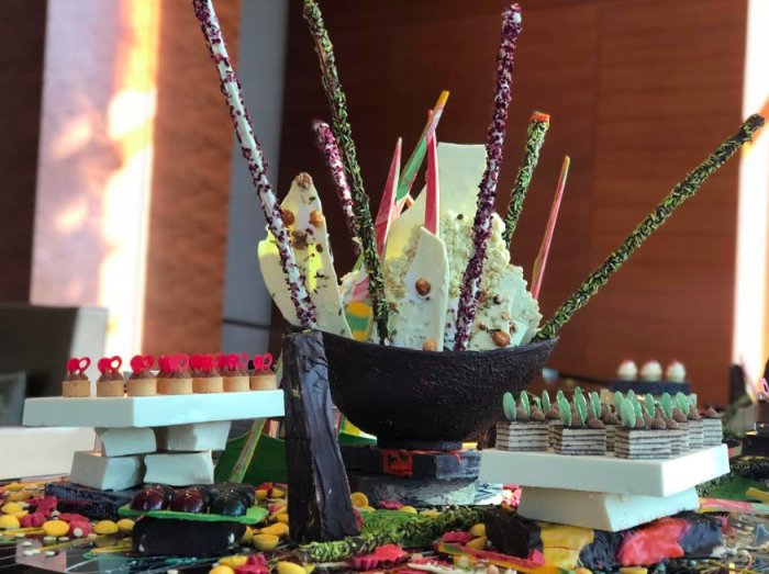 يستضيف "المجلس" مائدة حلويات واسعة يبلغ طولها 3.5 متر وتحتوي على باقات متنوعة وغنية بالنكهات اللذيذة صممت بأسلوب معاصر مع لمسات فنية من الشوكولاتة اللذيذة. وسيحصل ضيوف المجلس في روزوود أبوظبي على فرصة تذوق تشكيلة متنوعة من الحلوى بمختلف ألوانها وأصنافها الشهية، ومن بين أطباقها كعكة أوبرا بالشوكولاتة وكاستارد بروليه الشوكولاتة المحلى بالكراميل، وتشيز كيك بالشوكولاتة البيضاء، والكمأة بالشوكولاتة والكثير من الأطباق اللذيذة المغطسة بالشوكولاتة.