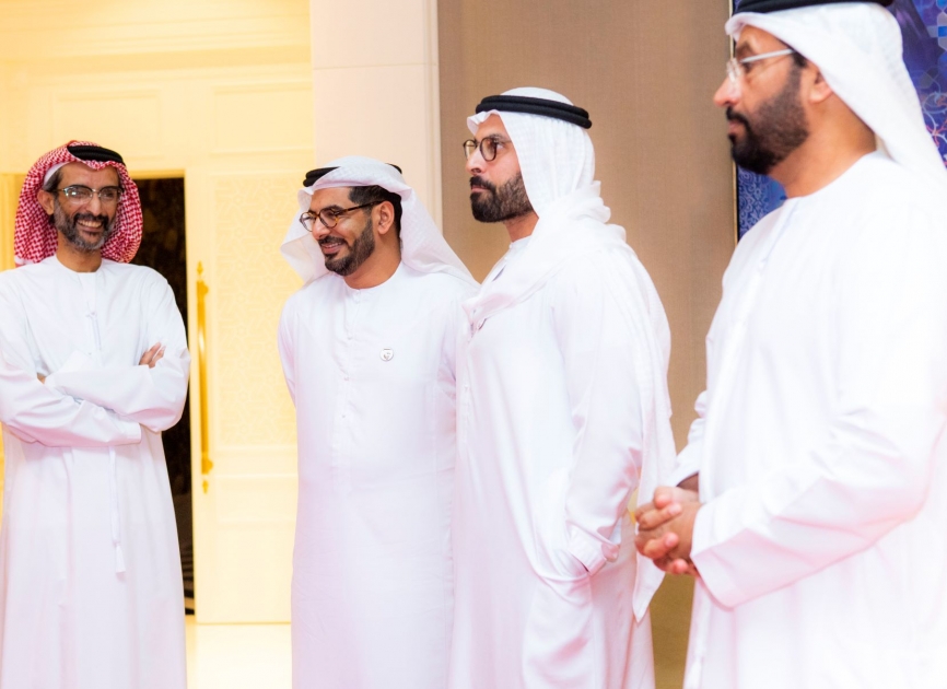 من اليمين إلى اليسار: فهد سعيد الكتبي نائب الرئيس التنفيذي لشركة الدار العقارية، ومعالي محمد خليفة المبارك رئيس مجلس إدارة شركة الدار العقارية، وطلال الذيابي الرئيس التنفيذي لشركة الدار العقارية، وجاسم صالح بوصيبع الرئيس التنفيذي للاستثمار في الدار العقارية رئيس مجلس إدارة شركة "بروفيس"، خلال حفل إطلاق شركة "بروفيس".