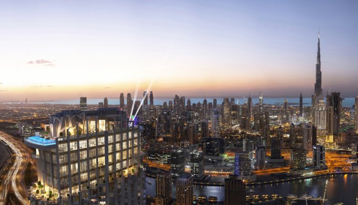 تتميز المنشأة الفندقية الجديدة، والتي تبعد 1.5 كم عن برج خليفة، بإطلالات خلابة على خور دبي والأفق العمراني المذهل لوسط مدينة دبي. كما يضم سطح البرج المكون من 75 طابقاً، بركتي سباحة بإطلالة لا متناهية في محيط مفتوح يتيح رؤية المدينة بزاوية 360 درجة. وستكون بركتا السباحة من أعلى المسابح في مدينة دبي والمنطقة.