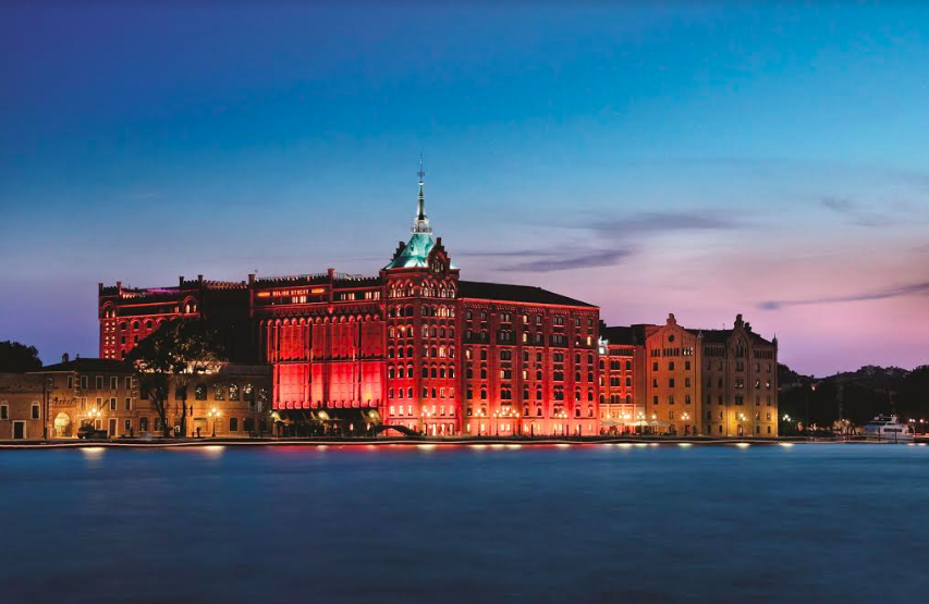 يقع هذا الفندق الذي كان قديمًا عبارة عن طاحونة من ثم تم تجديده بشكل جميل، على جزيرة "جيوديككا" المعزولة المطلة على مدينة البندقية الساحرة. سيتم نقل الضيوف على متن قارب إلى مركز المدينة حيث يمكنهم قضاء يومهم في التجول في الشوارع الرومانسية المرصوفة بالحصى والاستمتاع بزيارة أبرز معالم المدينة مثل ميدان سان ماركو، وجسر التنهدات، وجسر ريالتو وركوب قارب الجندول على طول القناة الكبرى. يضم الفندق ثاني أكبر منتجع صحي في البندقية و7 مطاعم ومقاهٍ شهيرة، مشكلًا المكان المثالي لاستكشاف المدينة والاسترخاء ولرحلة رومانسية برفقة الشريك.