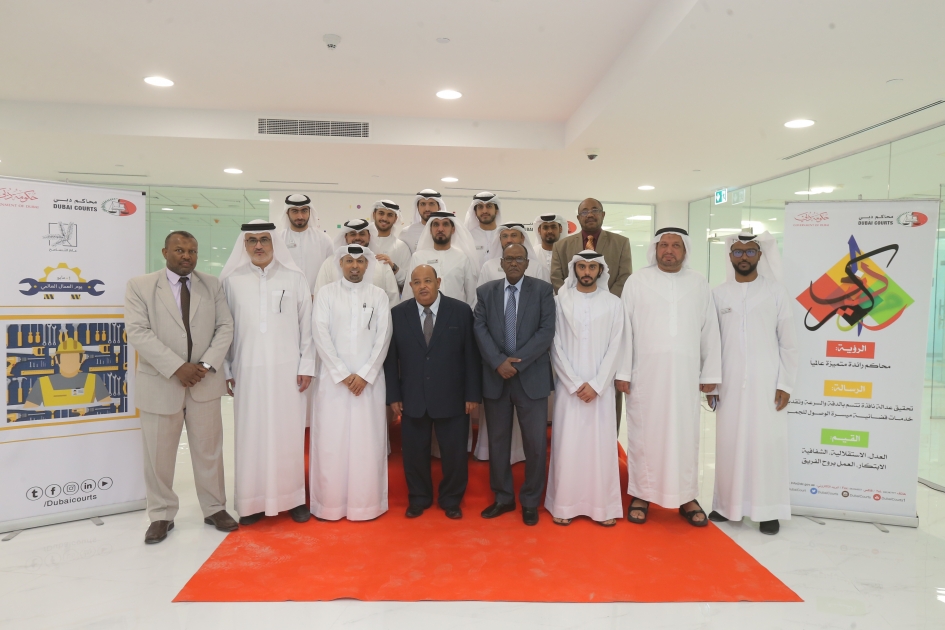 احتفلت محاكم دبي بيوم العمال العالمي، بحضور سعادة القاضي/ جمال الجابري رئيس المحكمة العمالية، والهيئة القضائية والإدارية وموظفين محاكم دبي، في مبنى المحكمة العمالية في العوير، وذلك تأكيداً لحقوقهم وتكريماً للعمال وأصحاب المهن المختلفة، وتحقيقاً لمبدأ الدعم المعنوي والمادي لهم، وتقديراً لجهودهم المتواصلة وعطائهم الدائم.