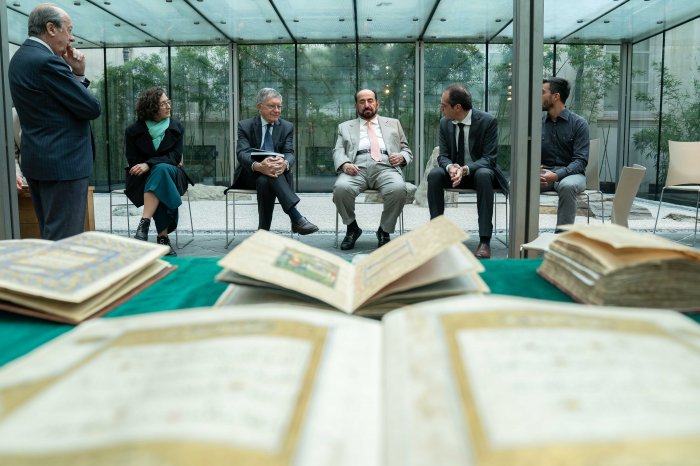 واطلع سموه على عدد من الكتب والمخطوطات الإسلامية التي تُعرض ضمن القسم الإسلامي في متحف الفنون الشرقية والتي تعد أحد أهم المعروضات التاريخية.