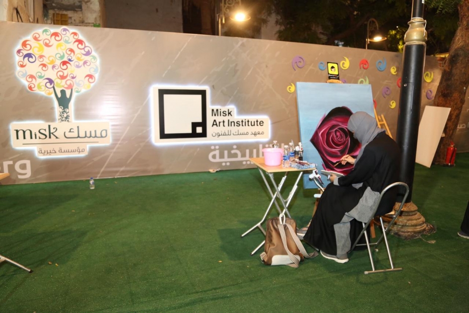 هنا بين فعاليات مبادرة مسك جدة التاريخية أتاح معهد مسك للفنون لعدد من الفنانين والفنانات المشاركة بحكاية تفاصيل هذا المكان برؤية فنية هادئه انعكست على الزوار الذين لم يجدوا من لغات التواصل فيما بينهم سوى الهمس ونظرات العيون، خشية أن يقطعوا برفع أصواتهم أفكار من جندوا إبداعهم الفني من أجل المكان.