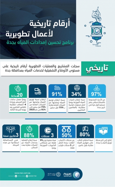 وأوضح رئيس القطاع الغربي بشركة المياه الوطنية المهندس محمد بن صالح الغامدي، أن الشركة بالقطاع الغربي استطاعت بعد اكتمال مشاريع تأهيل الشبكات والبنى التحتية وإعادة هندسة المنظومة التشغيلية بالكامل وتوزيعها بالتعاون مع شركاءها بقطاع المياه من القفز بكميات المياه الإجمالية التي يتم توزيعها حاليًا بشكل يومي بجدة بنسبة 34%، وذلك بعد اكتمال المرحلة الثالثة وتشغيلها مقارنة بما كان عليه الوضع قبل عامين عند بداية البرنامج، لتصل هذا العام إلى أكثر من مليون ونصف م٣ يوميًا عبر الشبكات، تمثل ما يقارب 90% من كميات الطلب الإجمالي على المياه في محافظة جدة.