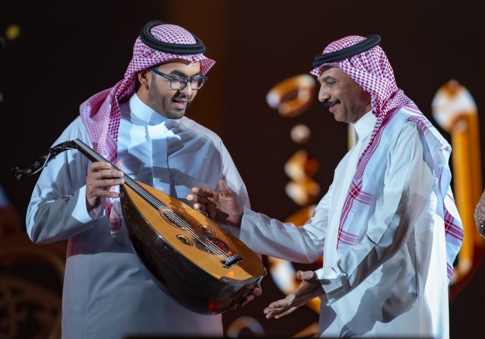 وقال آل الشيخ أنه فخور بتكريم قامة فنية بحجم الفنان عبادي الجوهر، كما طلب منه عزف أغنية "نالت على يدها" على آلة العود فقط، وقابل الجوهر هذا التكريم بالشكر الجزيل لهيئة الترفيه ورئيس مجلس إدارتها، مثمناً لهم هذه اللفتة.
