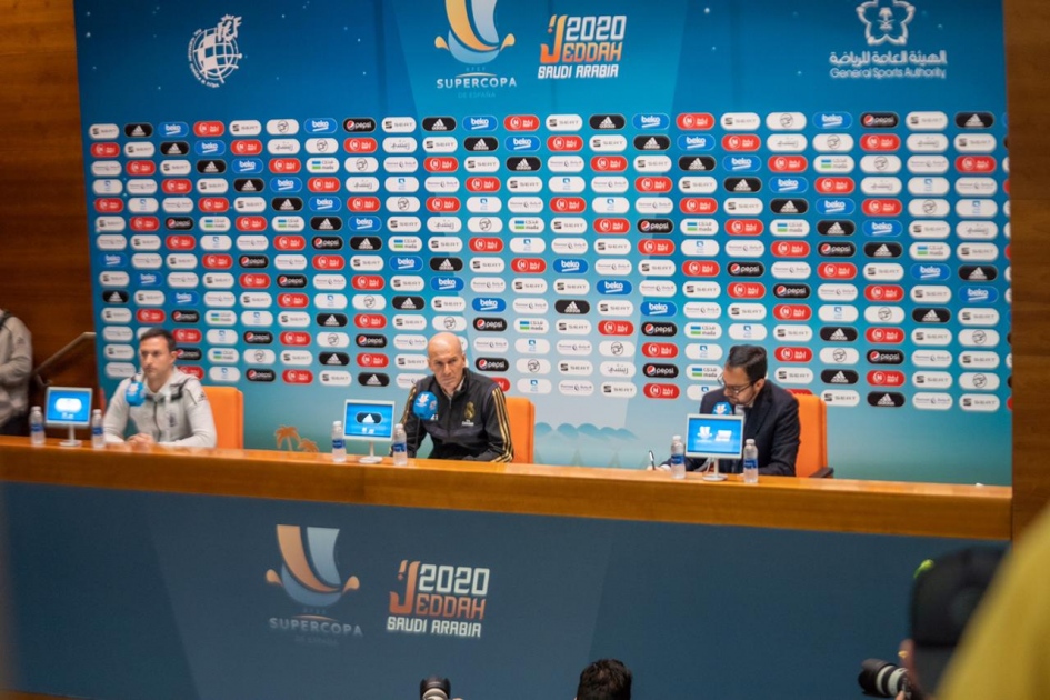 أكد الفرنسي زين الدين زيدان المدير الفني لفريق ريال مدريد، أن فريقه جاهز لخوض نهائي السوبر الإسباني أمام أتلتيكو مدريد بجدة، وقال زيدان في المؤتمر الصحفي الذي أقيم بقاعة المؤتمرات الصحفية بملعب مدينة الملك عبدالله الرياضية بجدة: "أعددت الفريق بطريقة متوازية ودربت الفريق على كل شيء، والمهم يجب أن نعلم أمام من نلعب وكيف يجب أن نلعب، وأن نستخدم كل الأساليب الخاصة بنا في مثل هذا النهائي".