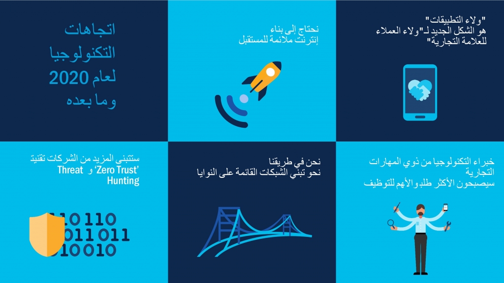 كشفت سيسكو عن أبرز توقعاتها التقنية لعام 2020 ومابعده، حيث تسلط سيسكو الضوء من خلال هذه التوقعات التغيرات المتسارعة التي تشهدها تكنولوجيا المعلومات على مستوى المفاهيم الأساسية.