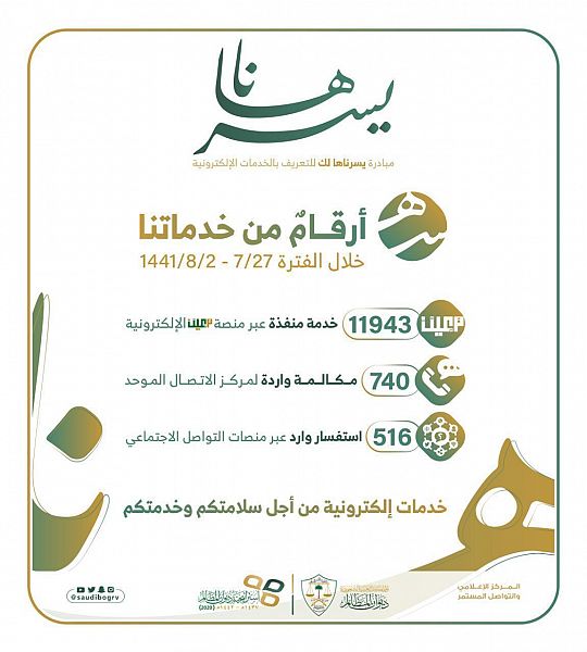 فيما تلقى مركز الاتصال الموحد بالديوان (740) اتصالًا واردًا من قبل المستفيدين، تنوعت ما بين استفسارات عن إجراءات التقاضي المتبعة في حالات تعليق العمل الحكومي، والجلسات القضائية، واستفسارات متعلقة بخدمات منصة معين الإلكترونية، وغيرها من الاستفسارات.