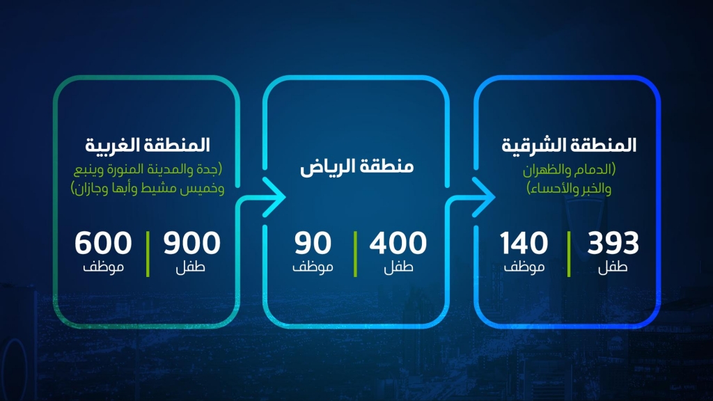 وتوزعت المستشفيات التي استقبلت هدايا العيد في المنطقة الشرقية، والتي ضمت 393 طفلًا و140 من الكوادر الطبية في كل من الدمام والظهران والخبر والأحساء. وتم توزيع الهدايا على عدة مستشفيات ومرافق صحية مثل: مستشفي الملك فهد التخصصي، ومستشفي النساء والولادة في الدمام، ومركز جونز هوبكنز أرامكو الطبي في الظهران، ومستشفي الملك فهد الجامعي بالخبر، وعدة مستشفيات في الأحساء منها مستشفي الأمير سعود بن جلوي، ومستشفي الملك فهد، ومستشفي الولادة والأطفال.