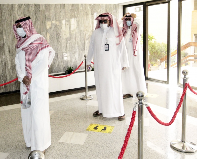 وقد شهد اليوم الأول تطبيق وتنفيذ الإجراءات والتدابير الوقائية اللازمة على جميع الموظفين والموظفات من قياس لدرجة حرارة الموظف، وتطبيق التباعد بينهم في المكاتب والممرات، والمصاعد، إضافة إلى الإجراءات المتبعة في المصليات، وكذلك تطبيق الحد الأدنى في الاجتماعات.