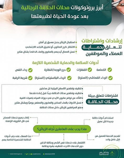 أعلنت وزارة الشؤون البلدية والقروية بروتوكولات عودة نشاط محلات الحلاقة الرجالية في المملكة.