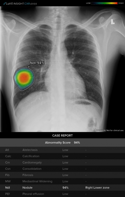 وتوفر "منظومة العناية الصدرية" الدعم الضروري للمساعدة في التعرف بسرعة على الحالات عالية الخطورة بالإضافة إلى مراقبة المرضى الذين يظهرون تطور وتراجع أعراض الجهاز التنفسي الخفيفة. مع معدل دقة يبلغ 97%-99% (المنطقة تحت المنحنى AUC)، وتم تخصيص الخوارزميات الفعالة التي تدعم تقنيات الذكاء الاصطناعي لاكتشاف نتائج الفحوص الإشعاعية في غضون ثوان معدود ة. وفي إحدى الدراسات، أظهرت النتائج انخفاضاً بنسبة 34٪ في وقت القراءة لكل حالة مرضية.