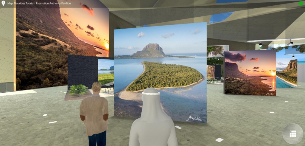 و تمكن كل مشارك في المعرض من إنشاء مجسم افتراضي (أفاتار) خاص به، والذي سمح للزائر بالتنقل افتراضيًا في ساحة المعرض، مع خيار الوصول إلى الأفراد الآخرين من حوله، بالإضافة إلى الاقتراب من أكشاك عارضي موريشيوس. أما في القاعات المفتوحة، فقد تمكن الزوار من مشاهدة الفيديو الترويجي للعارضين تلقائيًا، وتنزيل الكتيبات الخاصة بهم، وتبادل بطاقات العمل، بالإضافة إلى الدردشة مع العارض، أو عقد اجتماع صوتي خاص، سواء كان الاجتماع محددًا مسبقًا أو تم عقده بشكل ارتجالي عند الوصول داخل المعرض.
