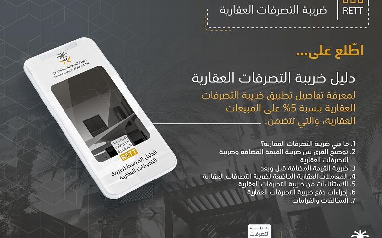 ويأتي إطلاق الدليل في إطار الجهود التوعوية التي تنفذها الهيئة العامة للزكاة والدخل، وبالتزامن مع بدء تطبيق قرار فرض ضريبة التصرفات العقارية غداً الأحد، بوصف الهيئة الجهة المكلفة بتحصيل وإدارة الزكاة والضرائب، وإنفاذ الأنظمة الضريبية في المملكة.