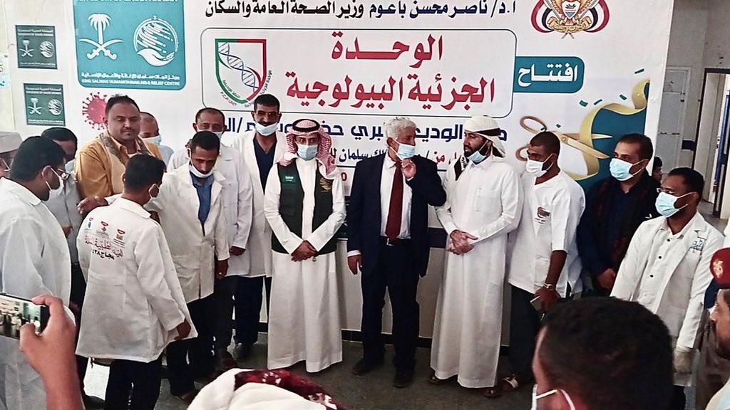 دشن مركز الملك سلمان للإغاثة والأعمال الإنسانية أمس العمل بوحدة الـ (PCR) في منفذ الوديعة البري بمحافظة حضرموت للكشف عن فيروس كورونا المستجد (كوفيد - 19).