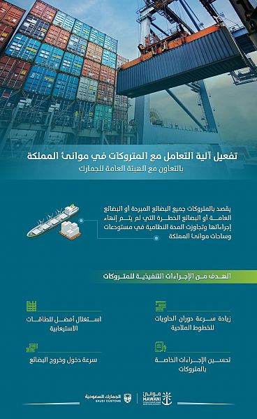 أعلنت الهيئةُ العامة للموانئ "موانئ" اليوم، بالتعاون مع الهيئة العامة للجمارك، عن اعتماد وتفعيل آلية جديدة لمعالجة بضائع وحاويات المتروكات في موانئ المملكة التي تتجاوز المدة النظامية في بقائها في مستودعات وساحات الموانئ.