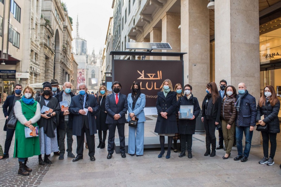 و يحتوي المعرض علي 30 لوحة و سيكون متاحاً مجانًا على طول شارع كورسو فيتوريو إيمانويل الثاني في ميلانو، في الفترة من 25 فبراير إلى 28 مارس 2021، وسيكون فرصة ممتازة للسماح للإيطاليين باكتشاف منطقة لا تزال غير معروفة والتي توجد فيها علامات وآثار منذ أكثر من 250,000 سنة من تاريخ التطور البشري، بدايةً من عصور ما قبل التاريخ حتى يومنا هذا، مروراً بممالك غامضة مثل ممالك لحيان ودادان والأنباط و بالطبع العصر الروماني.