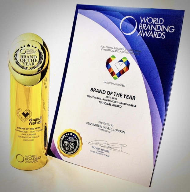 للسنة الثانية على التوالي، تم ترشيح شركة النهدي الطبية من بين 400 علامة تجارية عالمية للحصول على لقب "العلامة التجارية للعام 2020-2021" عن فئة الرعاية الصحية والصيدليات في جوائز تكوين العلامات التجارية العالمية. وقد تم اختيار شركة النهدي وفقًا للمعايير التالية: تقييم العلامة التجارية وأبحاث السوق الاستهلاكية وتصويت العملاء.