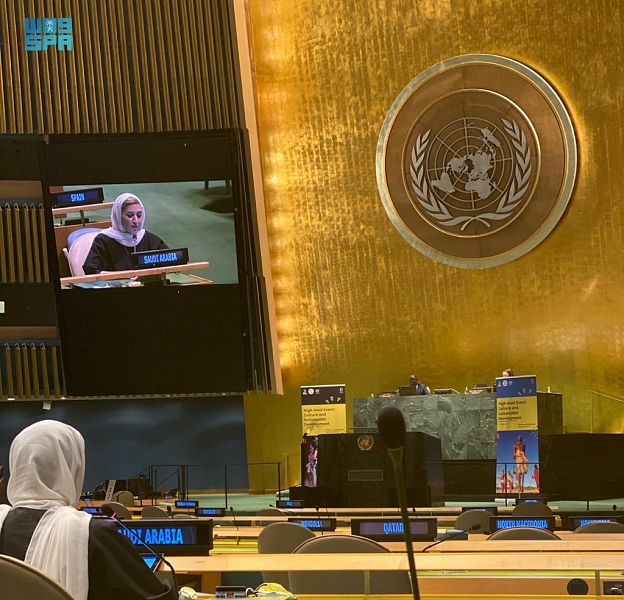 جاء ذلك في كلمة المملكة أمس الجمعة، خلال الاجتماع رفيع المستوى للثقافة والتنمية المستدامة الذي نظمته الجمعية العامة للأمم المتحدة بالتعاون مع منظمة الأمم المتحدة للتربية والعلم والثقافة، والتي ألقتها رئيسة اللجنة الثانية بوفد المملكة الدائم لدى الأمم المتحدة سارة عاشور.