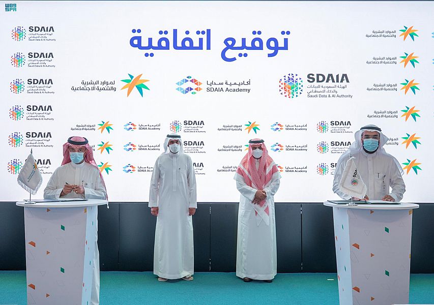 شهد معالي وزير الموارد البشرية والتنمية الاجتماعية المهندس أحمد بن سليمان الراجحي ومعالي رئيس الهيئة السعودية للبيانات والذكاء الاصطناعي "سدايا" الدكتور عبد الله بن شرف الغامدي توقيع أربع اتفاقيات لتعزيز التعاون بين الجانبين وتحقيق الاستفادة القصوى من البيانات والذكاء الاصطناعي, وذلك في مقر الهيئة في الرياض, بحضور عدد من أصحاب المعالي من الجانبين.