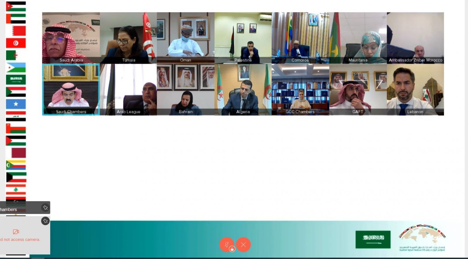 شارك اتحاد الغرف السعودية أمس في أعمال الاجتماع الافتراضي لوزراء التجارة في الدول العربية التحضيري للاجتماع الوزاري الثاني عشر لمنظمة التجارة العالمية المقرر عقده بجنيف من 30 نوفمبر إلى 3 ديسمبر 2021م، والذي استضافته المملكة بصفتها منسقًا للمجموعة العربية في منظمة التجارة العالمية برئاسة معالي وزير التجارة رئيس مجلس إدارة الهيئة العامة للتجارة الخارجية الدكتور ماجد بن عبدالله القصبي، وبمشاركة معالي محافظ الهيئة العامة للتجارة الخارجية الأستاذ عبدالرحمن بن أحمد الحربي.