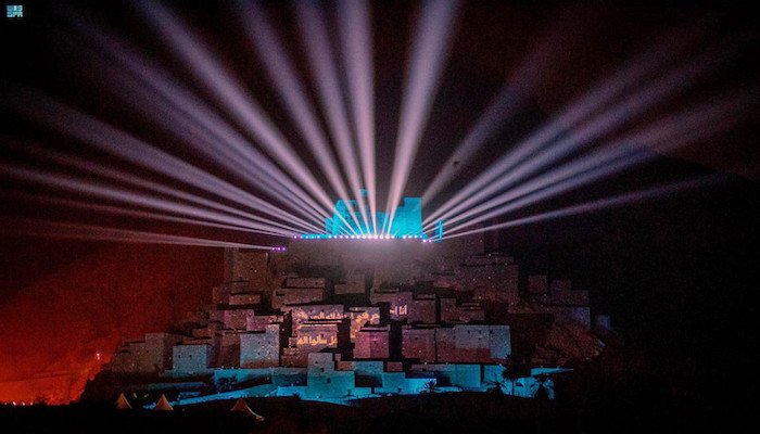 تزينت واجهة 58 منزلاً تراثياً بقرية ذي عين الأثرية بمنطقة الباحة، بعروض الصوت والضوء احتفاءً بتسجيل فنون الخط العربي في قائمة التراث الثقافي غير المادي في منظمة الأمم المتحدة للتربية والعلم والثقافة "اليونسكو"، وذلك بمبادرة وقيادة المملكة بالتعاون مع 15 دولةٍ عربية.