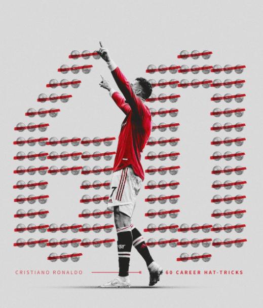 وهذه هي المرة الثالثة التي ينال فيها رونالدو لقب هاتريك مع مانشستر بعد أن سبق له تحقيق هذا الإنجاز في 2008 كما حقق الإنجاز ذاته ثلاث مرات مع يوفنتوس الإيطالي بينما أحرز قائد المنتخب البرتغالي لقب هاتريك 44 مرة خلال تسع سنوات قضاها مع ريال مدريد الإسباني.